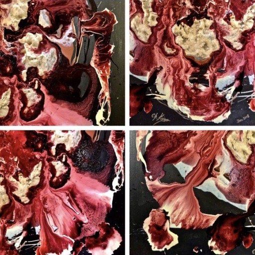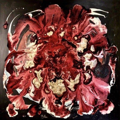 Die Entstehung eines Kunstwerkes ist ein Aufbäumen ihrer Seele, bis es einfach raus muss. Die Farben übernehmen die Macht und aus dem Nichts entsteht ein Werk. Ein Abdruck einer Momentaufnahme ihrer Seele.